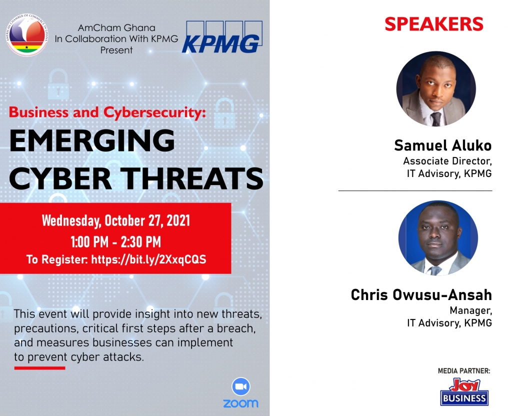 Cyber security has long been one of the most challenging issues for businesses, and in this month of cybersecurity awareness, AmCham Ghana collaborates with one of the leading business advisory firms KPMG for this important virtual meeting on Emerging Cyber Threats in the business environment.