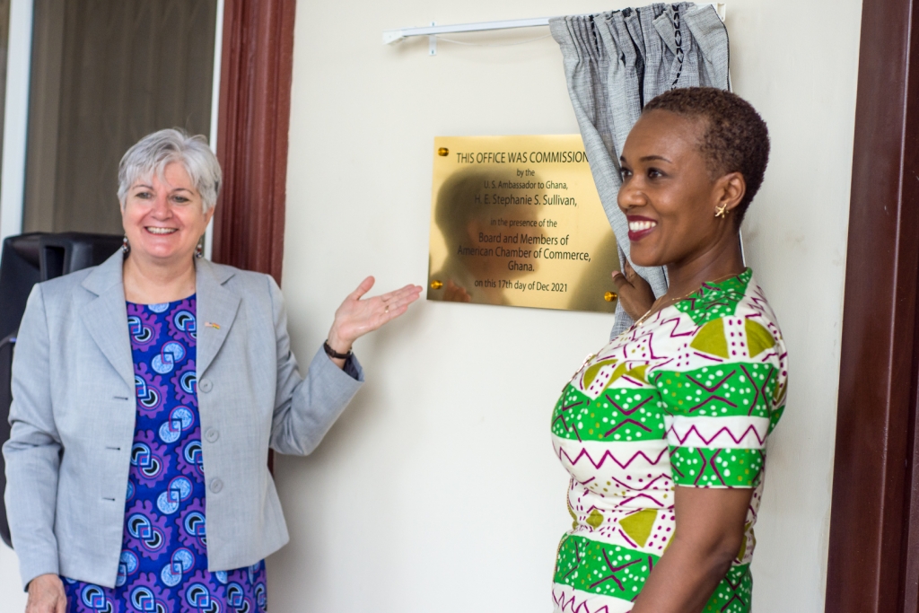 The United States Ambassador to Ghana, Stephanie Sullivan, on Friday, 17 December 2021, commissioned the new AmCham Ghana secretariat at no. 10 Mensah Wood Avenue, East Legon, Accra.