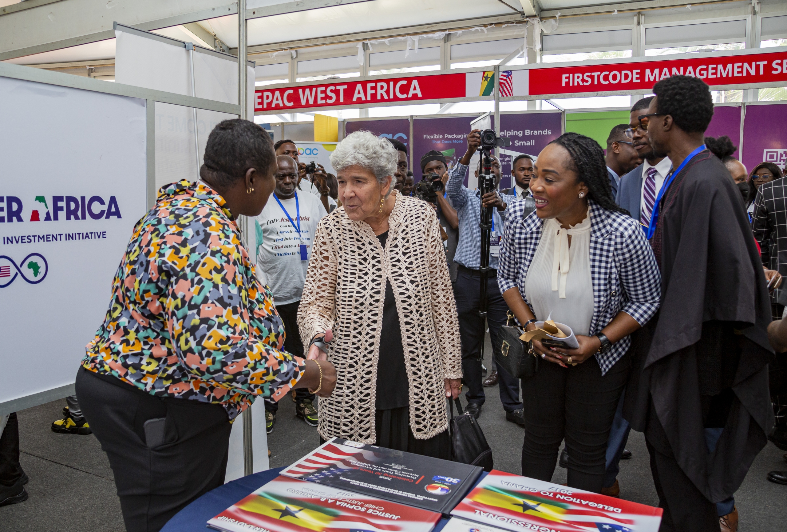 The signing ceremony was followed by the inauguration of the exhibition, led by Under Secretary Marisa Lago, in the company of Hon. Kobina T. Hammond, U.S. Ambassador Virginia Palmer, Ayesha Bedwei Ibe, Charles DeBow (NBCC President & CEO), Expo sponsors (Delta Air Lines, Kosmos Energy, Avis, Cargill, AllStar Insurance Brokers), and members of the media.