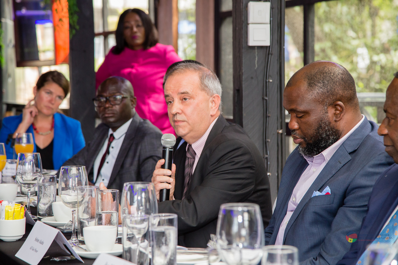 Throughout the dialogue, students inquire into Ghana’s promising business environment alongside the challenges of international collaboration.